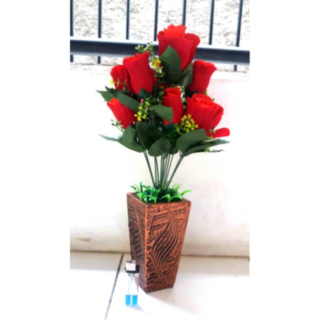 Bunga Mawar Merah Plastik Bunga Pohon Hias Plastik Bunga Hiasan Meja Plastik Shopee Indonesia