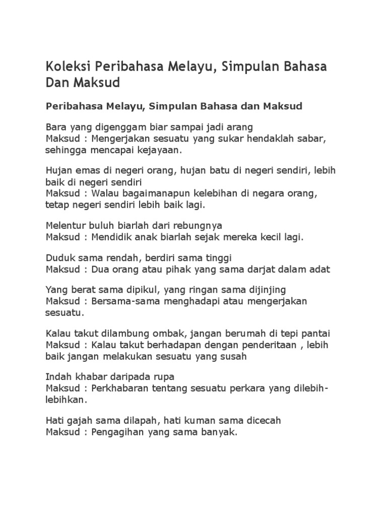 Peribahasa Maksud Dan Contoh Ayat
