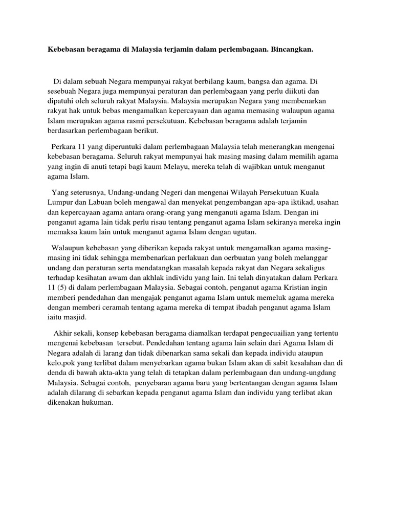 Kebebasan Beragama Di Malaysia Terjamin Dalam Perlembagaan Docx