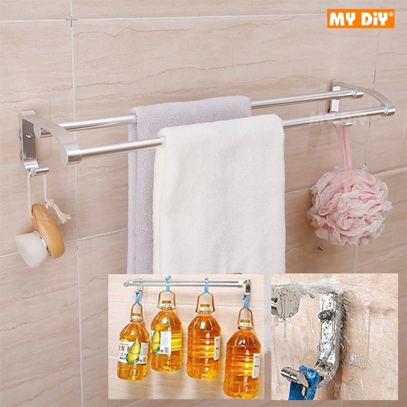 My Diy Aluminium Double Towel Rack With Magic Sticker Shopee Singapore